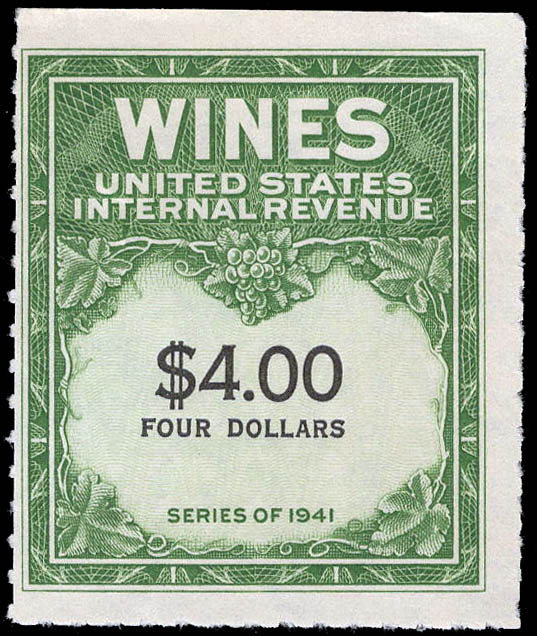 Wines, 1949, $4 yellow green & black (Scott RE175), without gum as issued, Fine, scarce high value. Scott $1,000. (Image)