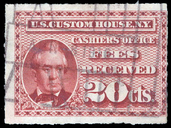 Customs Fee, 1887, 20¢ red, rouletted 7 (Scott RL1c), Fine. Scott $600. (Image)