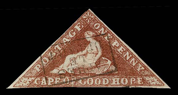 FORGERIES & FANTASIES: CAPE OF GOOD HOPE 1p brick red. "cancelled by forged violet boxed "APRES LE DEPART". Even the