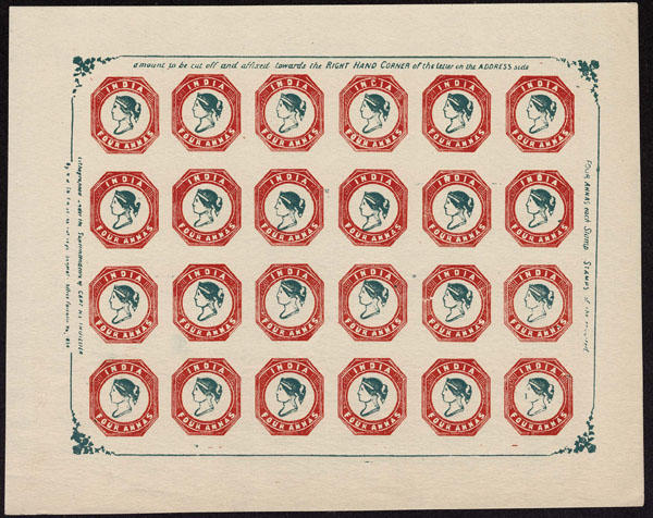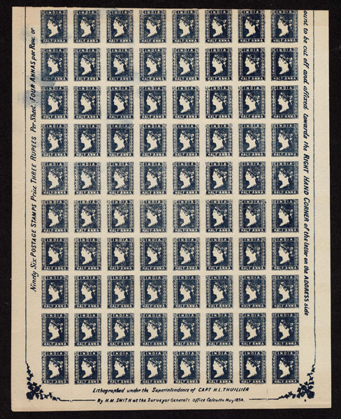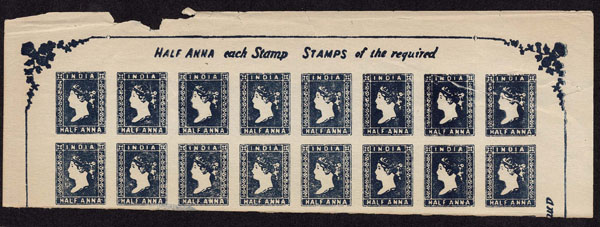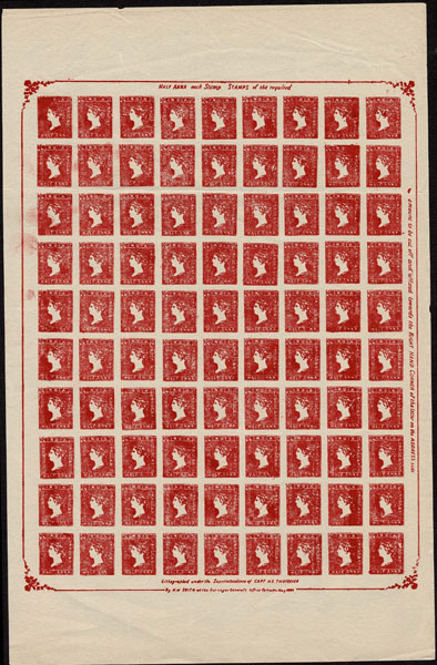 FORGERIES & FANTASIES: India : 1854 1/2 a red, 1/2s blue, 4 a red & blue complete "sheets:. respectively of 90. 96, 24,
