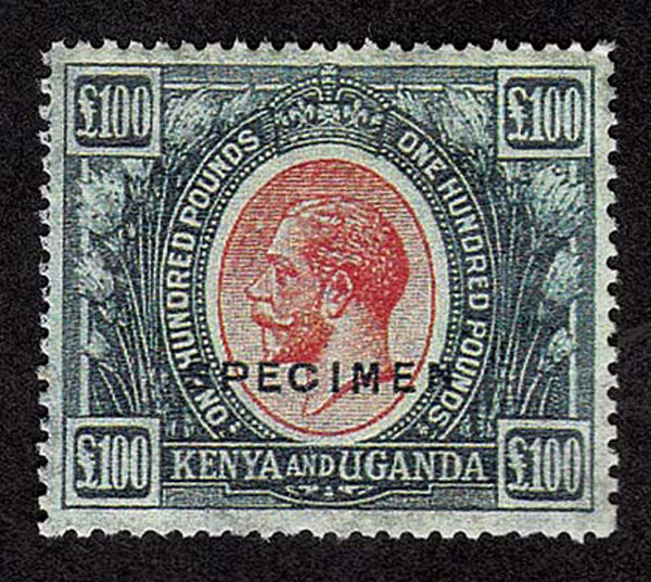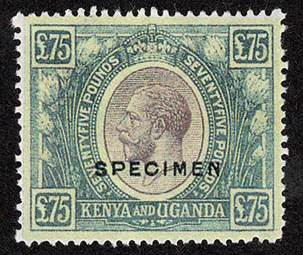 FORGERIES & FANTASIES: KENYA & UGANDA.£50, £75, £100 Overprint SPECIMEN. not bad "o,g. or perforations, color a bit soft.