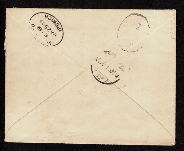 flap tear) on reverse, manuscrpt Government Residence to Whitfield King and Co, a stamp gentleman dealer in Ipswich England with Ipswich receiver. Ex. Bromberg (SG 11) Sale and Lot Updates (Image) (Image2)