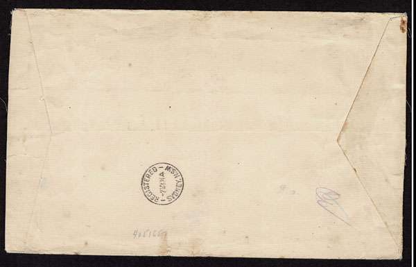 capsulated with label on reverse. Ex. Bromberg (SG 11a) Certainly impressive and rare cover. "Five years later the "Dead Letter Return" of a large O.H.B.M.S. registered envelope also addressed to "W" Bradbury", but the c/o/ The