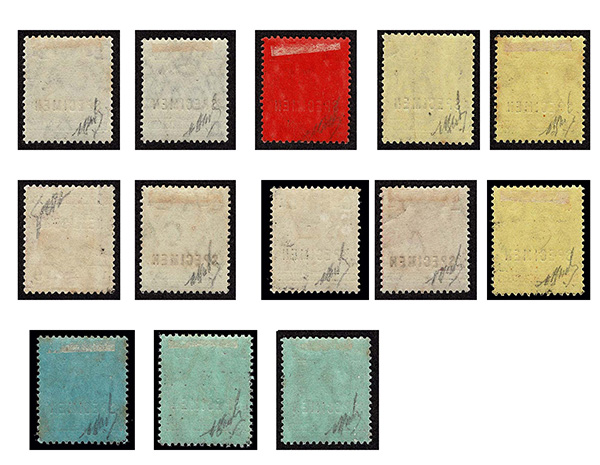 single, 1 d pair cancelled Sydney (on Victoria lot sheet) plus 7 stuck down and 5 specimens., some curling but generally fine to very fine. Ex. Bromberg Sale and Lot Updates (Image) (Image2)