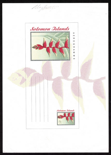 BRITISH SOLOMON ISLANDS: 1993 set of six preliminary drawings of the Orchid Aerogramme by Mary Butterfield. Orchids are a
