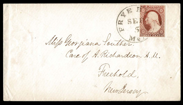 olive grayish FRYEBURG SEP 5 MS c.d.s. on neat off-white envelope to Freehold, New Jersey. Ex. Saadi Sale and Lot