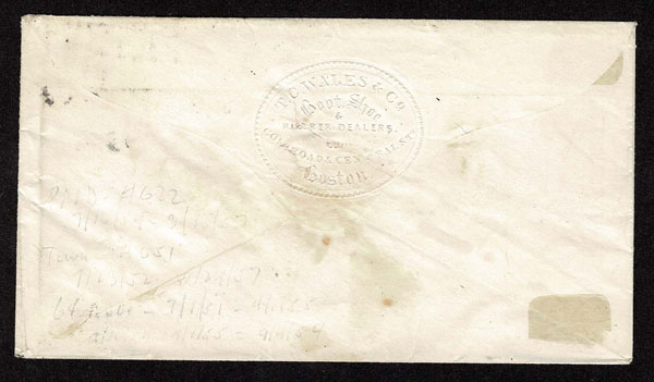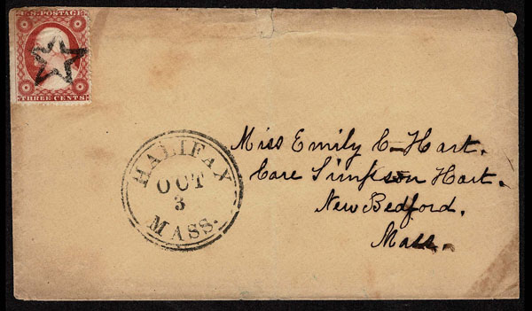 circle HALIFAX OCT 1 MASS c.d.s. to New Bedford receiver on reverse. A cute cover. Sale and Lot Updates (Image) (Image2)