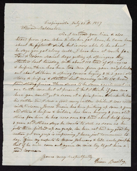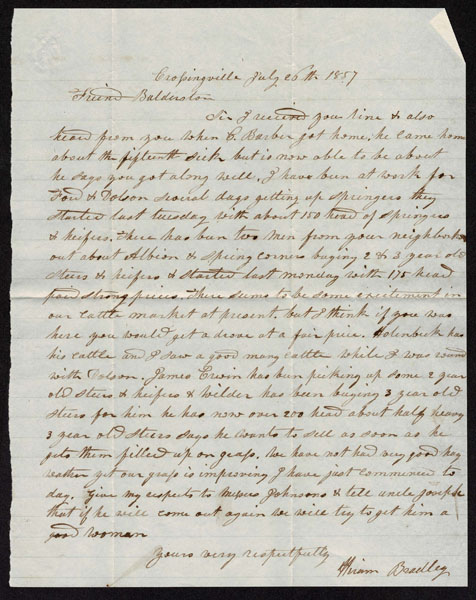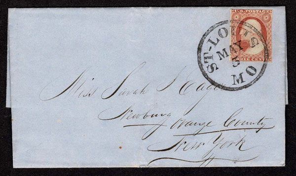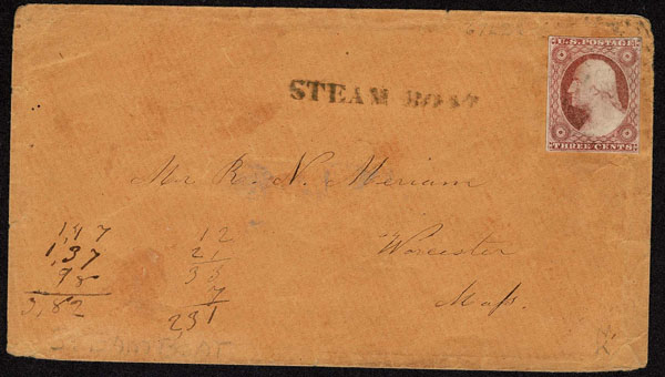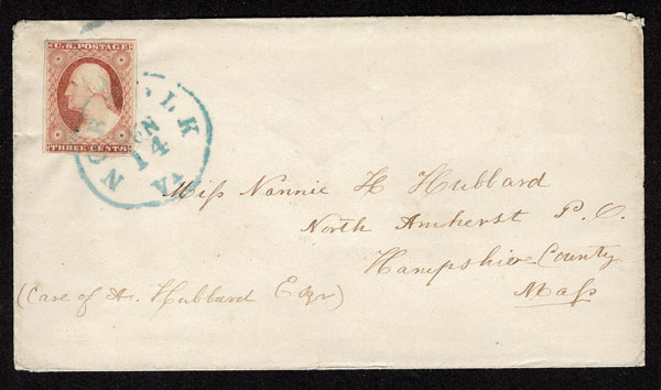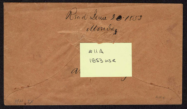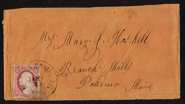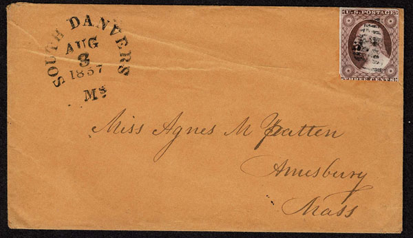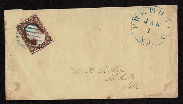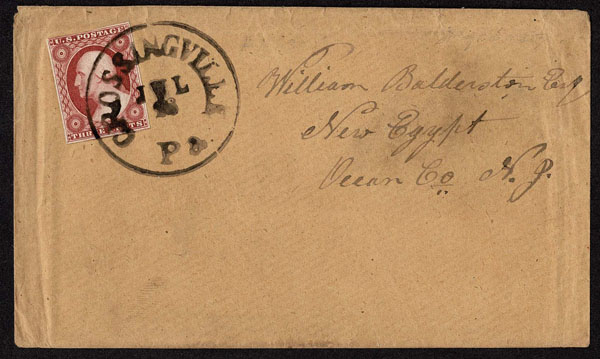 all-around, just touching frame line, tied by large CROSSINGVILLE PA JUL 20 (1857) on manila envelope with enclosure, to New Egypt, NJ concerning Heffers and the prices. Ex Saadi Sale and Lot Updates (Image) (Image2)