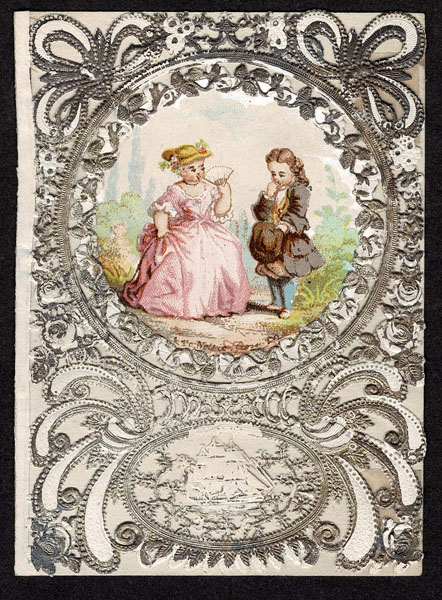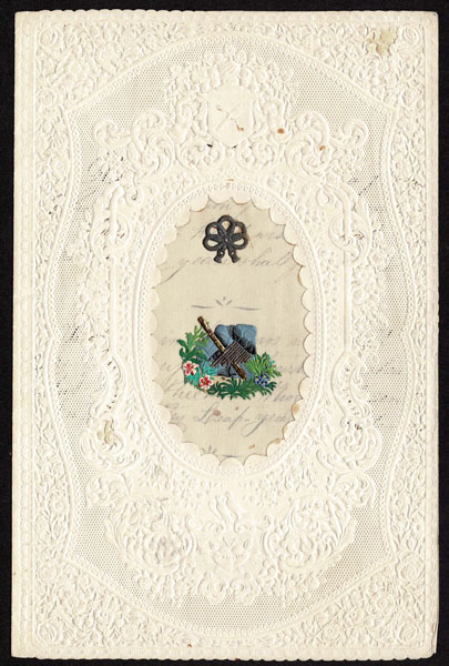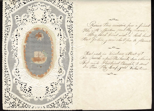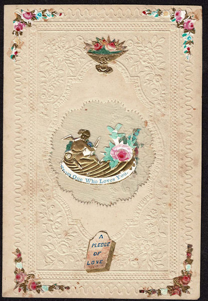 elaborate embossed valentine envelope by "PHILADELPHIA PA FEB 16" c.d.s. Gilded Valentine enclosure. Sale and Lot