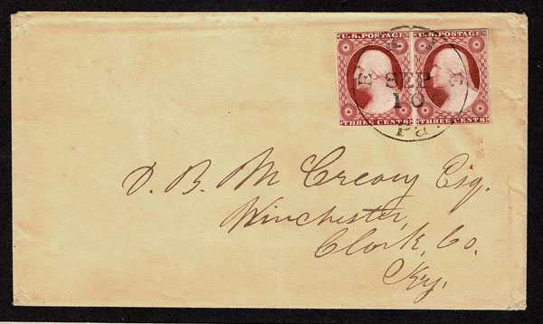 in at bottom, tied by "socked on nose" ERIE PA, SEP 10 c.d.s. on fresh manila envelope to Winchester KY. Ex Saadi Sale and Lot Updates (Image) (Image2)