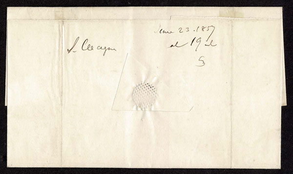 JUN 23 1857 c.d.s. on white folded letter sheet to Columbia PA. Ex Saadi Sale and Lot Updates (Image) (Image2)