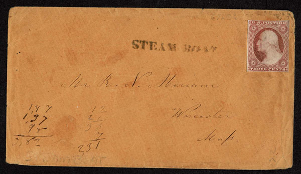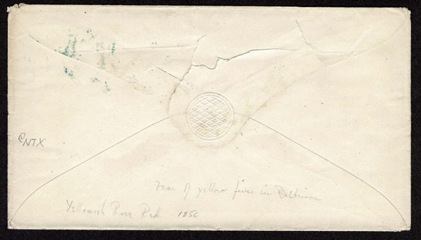 c.d.s. on white envelope, contents date lines 1856 with reference to yellow fever plague. Ex Saadi Sale and Lot