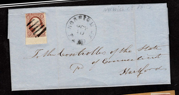1851 to 1861 3c Red - Connecticut. UNITED STATES: Tennessee; 1852-1855 3c brownish carmine (a bit oxidized). good