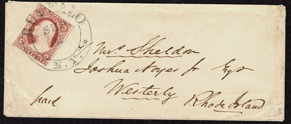 1851 to 1861 3c Red - Rhode Island. UNITED STATES: Rhode Island; 1852-1855 3c red, margins to just in , tied by