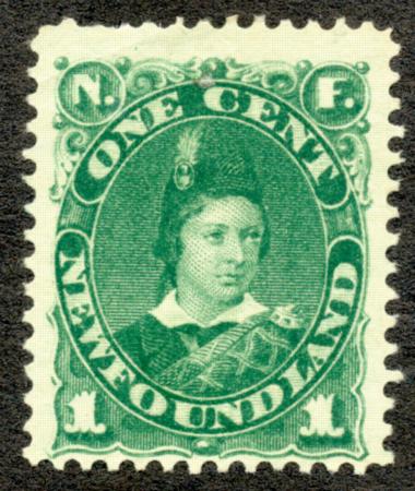 Newfoundland. Scott 44, Fine LH, corner crs, sp's, 1887 1c deep green CV $30.00 (Image)