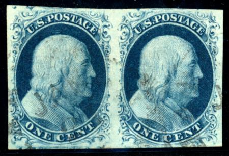 US - Classics - Scott 1-111. Scott 7, XF-S PAIR, Large, Clear margins on all sides, very light CDS cancel, a Gem Pair, 1851 1c Blue, Type II CV $est 1200-1500 (Image)