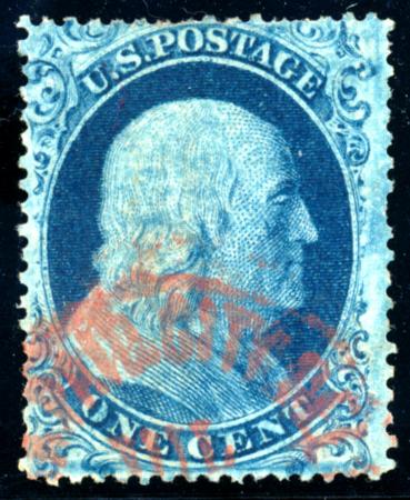 US - Classics - Scott 1-111. Scott 18, VF, with red carrier cancel, a few shorter perfs, 1999 PF Cert. 1861 1c Blue, Type I, Perf 15½ CV $500.00