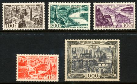 France-Airmails. Scott C23-C27, VF LH, Fresh Color! 1949-1950 Airmails, set of 5 CV $212.70 (Image)