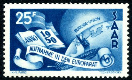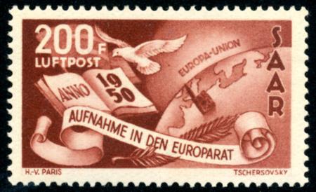 Saar. Scott B91, F-VF, 1952 30fr + 10fr, dark blue CV $27.50 (Image)