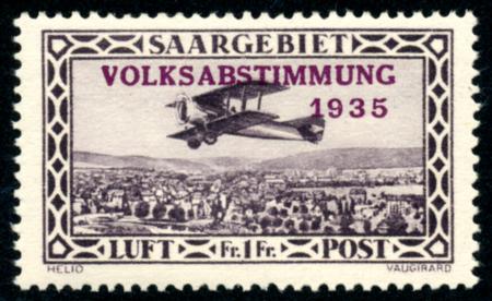 Saar. Scott C7, F-VF NH, 1934 1fr dk vio, ovpt. in Violet CV $15 for NH (Image)