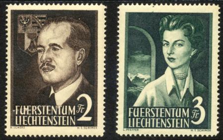 Liechtenstein. Scott 287-288, VF NH, mild bends, 1955 2fr, 3fr on cream paper CV $140.00 (Image)