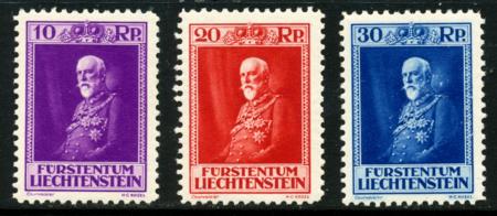 Liechtenstein. Scott 111-113, VF NH, 1933 Prince Francis I 80th birthday CV $180.00 (Image)