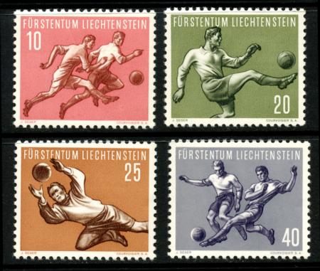 Liechtenstein. Scott 277-280, VF NH, 1954 set of 4, Soccer CV $42.50 (Image)
