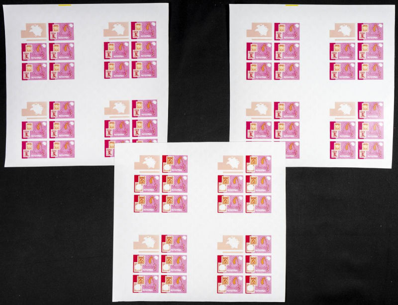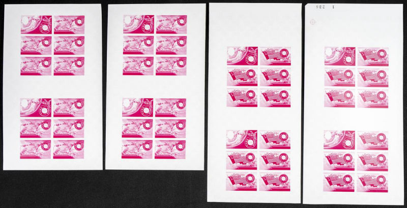 113/14. 1974. U.P.U. centenary. Group of progressive plate proofs of the set. TO EXAM. Description of lots is limited to the cataloguing of the stamps and their characteristics. The total of the material included in each case is