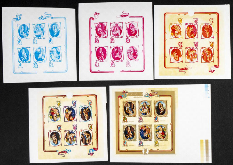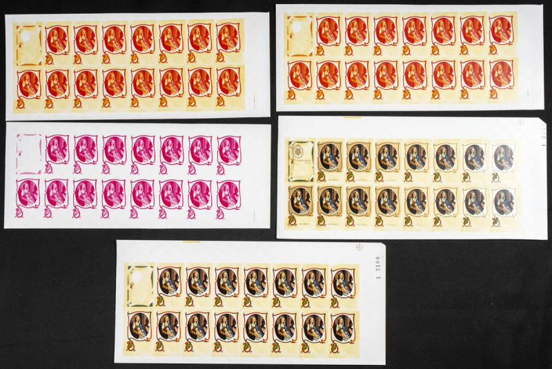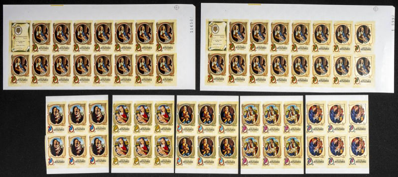 115/20. 1974. Christmas. Group of progressive plate proofs of the set. TO EXAM. Description of lots is limited to the cataloguing of the stamps and their characteristics. The total of the material included in each case is photographed to