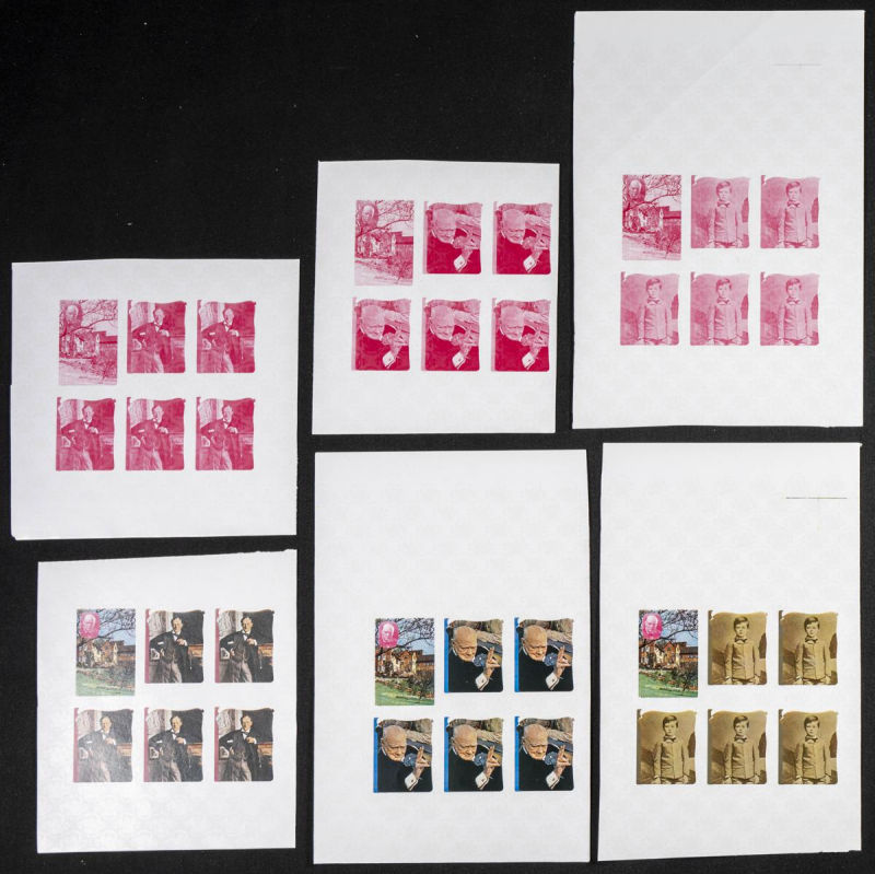 121/25. 1974. Sir Winston Churchill. Group of progressive plate proofs of the set. TO EXAM. Description of lots is limited to the cataloguing of the stamps and their characteristics. The total of the material included in each case is