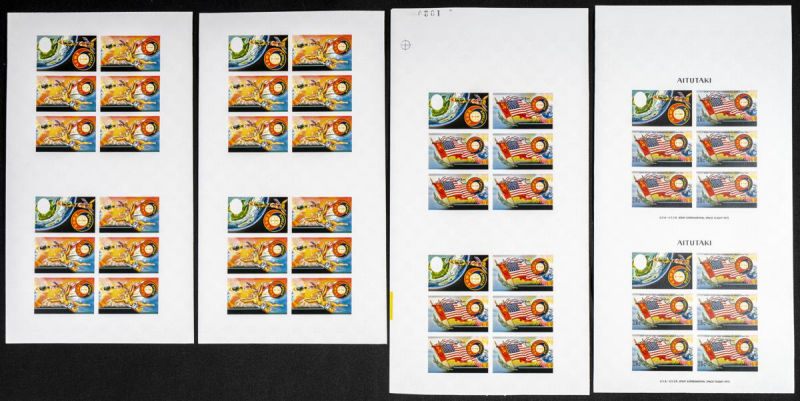 134/35. 1975. Apollo-Soyuz. Group of progressive plate proofs of the set. TO EXAM. Description of lots is limited to the cataloguing of the stamps and their characteristics. The total of the material included in each case is photographed to