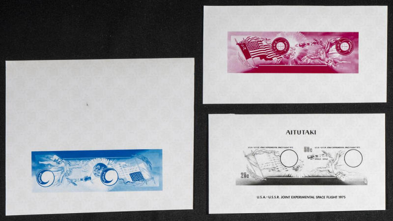 B5. 1975. Apollo-Soyuz. Group of progressive plate proofs of the set. TO EXAM. Description of lots is limited to the cataloguing of the stamps and their characteristics. The total of the material included in each case is photographed to