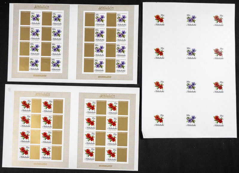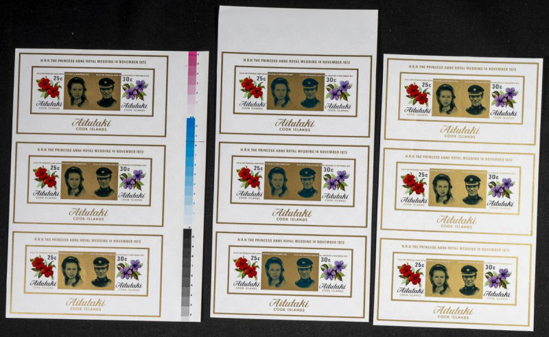 1973. Royal wedding, flowers. Group of IMPERFORATED sets. TO EXAM. Description of lots is limited to the cataloguing of the stamps and their characteristics. The total of the material included in each case is photographed to allow an