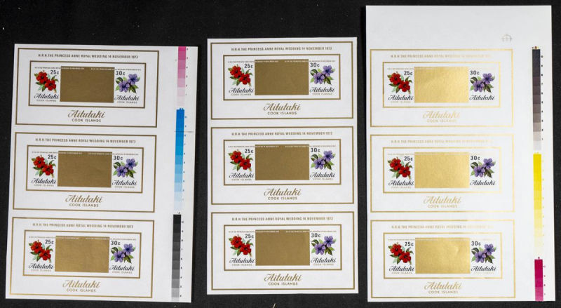1973. Royal wedding, flowers. Group of progressive plate proofs of the set. TO EXAM. Description of lots is limited to the cataloguing of the stamps and their characteristics. The total of the material included in each case is photographed