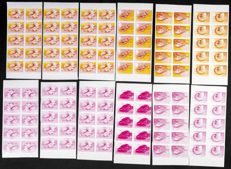 95/06. 1974. Shells. Group of IMPERFORATED sets. TO EXAM. Description of lots is limited to the cataloguing of the stamps and their characteristics. The total of the material included in each case is photographed to allow an assessment of