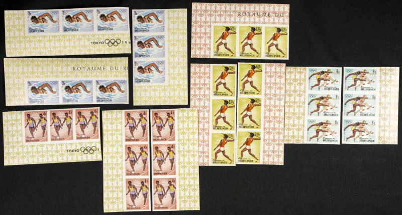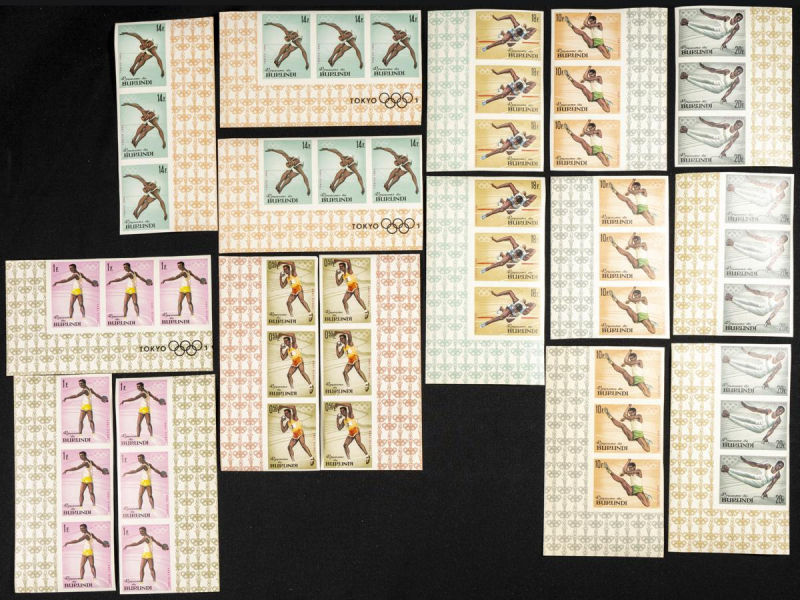 102/11A. 1964. Olympic games-Tokio 1964. Group of IMPERFORATED sets. TO EXAM. Description of lots is limited to the cataloguing of the stamps and their characteristics. The total of the material included in each case is photographed to