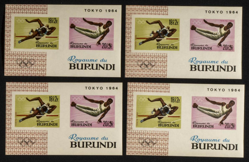 |**|Yvert B5. 1964. Olympic games-Tokio 1964. Group of IMPERFORATED sets. TO EXAM. Description of lots is limited to the cataloguing of the stamps and their characteristics. The total of the material included in each case is