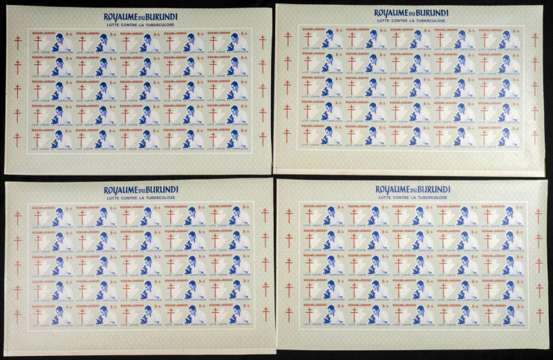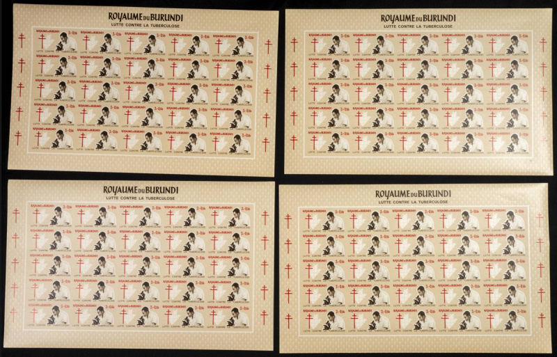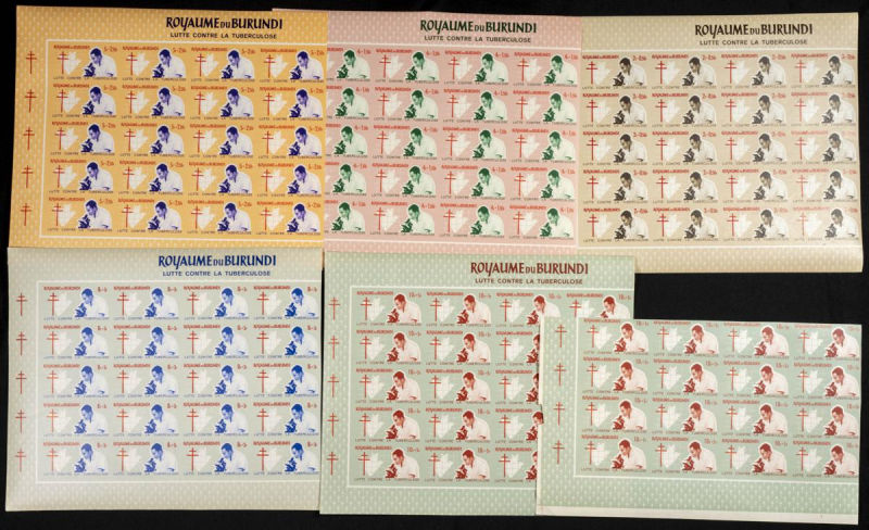 |**|Yvert 118/22. 1965. Anti tuberculosis. Group of IMPERFORATED sets. TO EXAM. Description of lots is limited to the cataloguing of the stamps and their characteristics. The total of the material included in each case is