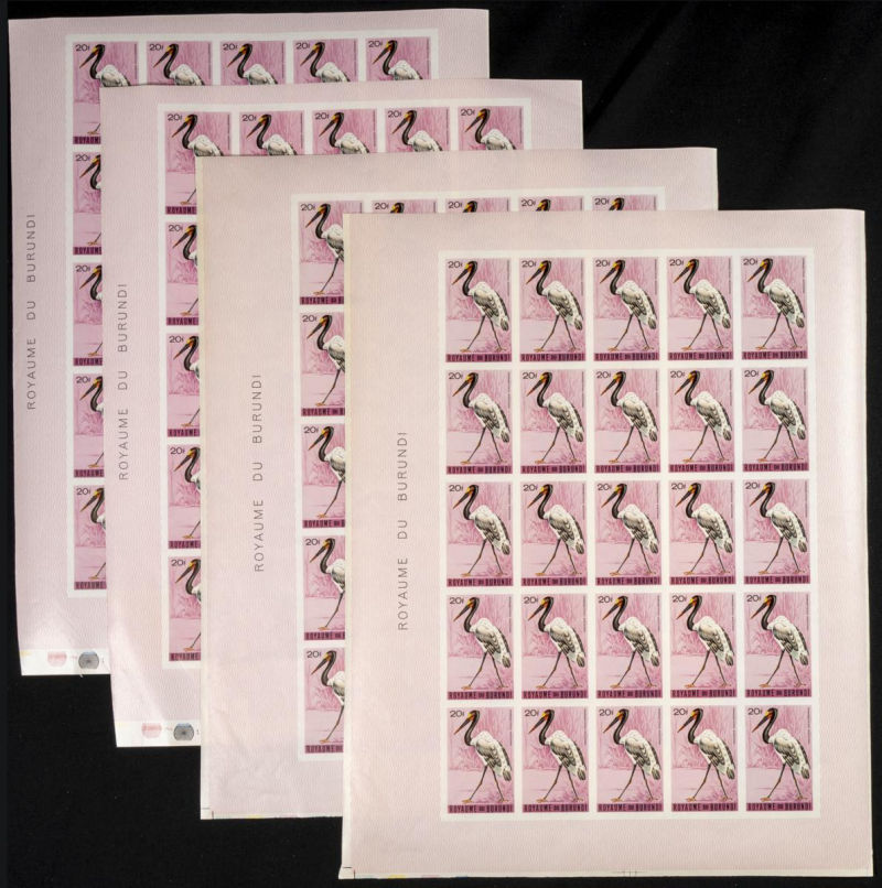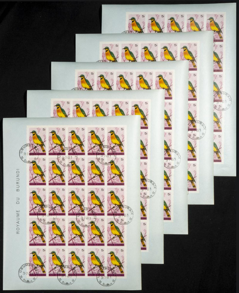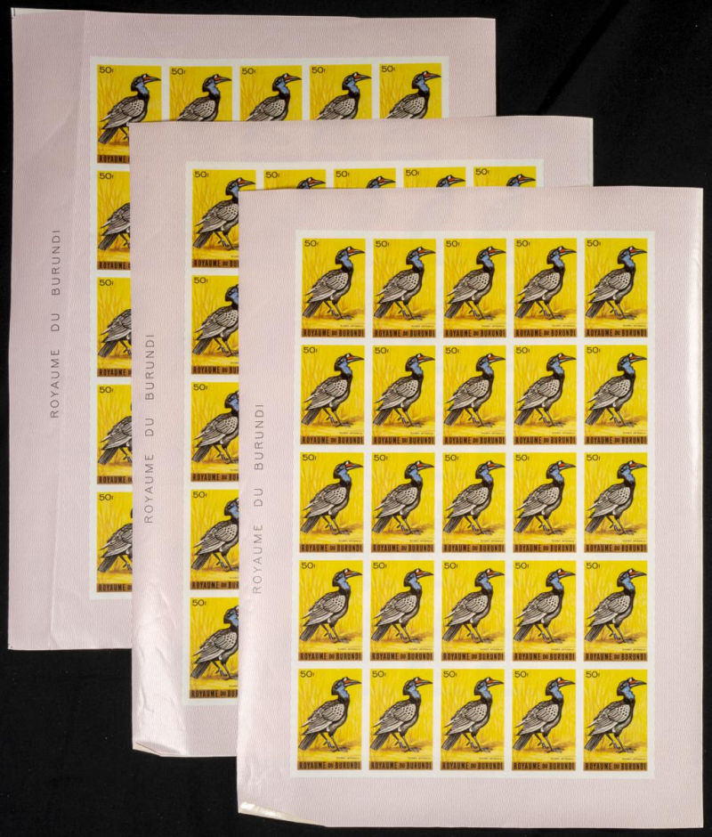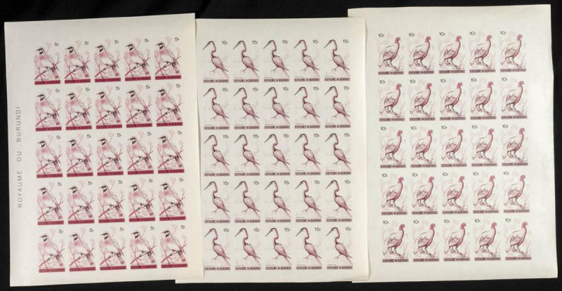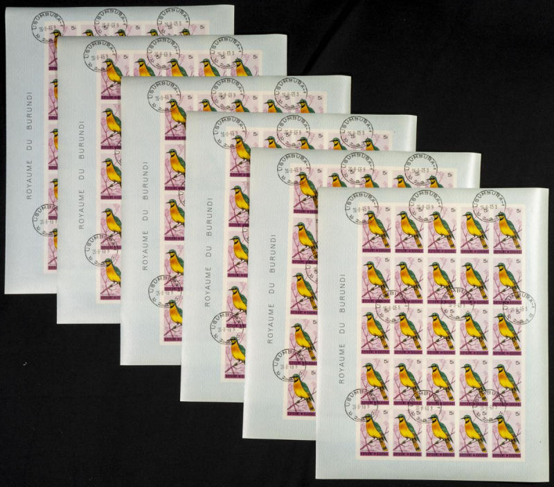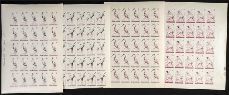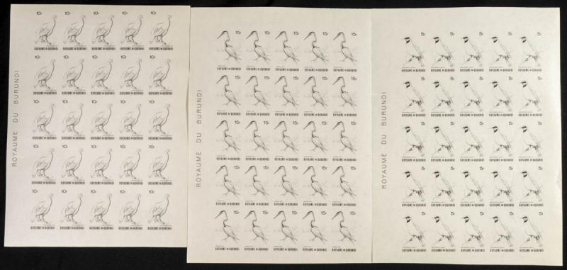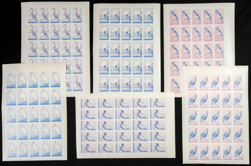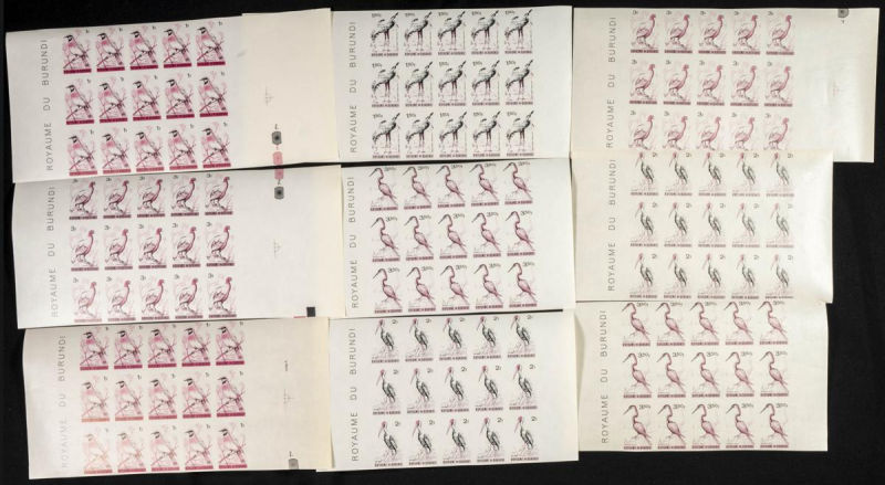 123/37. 1965. Birds. Group of IMPERFORATED sets. TO EXAM. Description of lots is limited to the cataloguing of the stamps and their characteristics. The total of the material included in each case is photographed to allow an assessment of