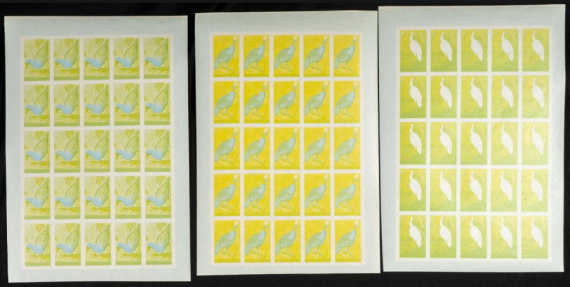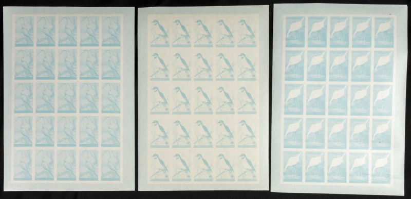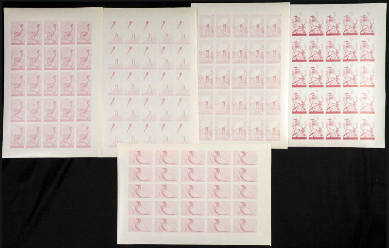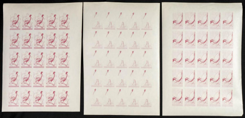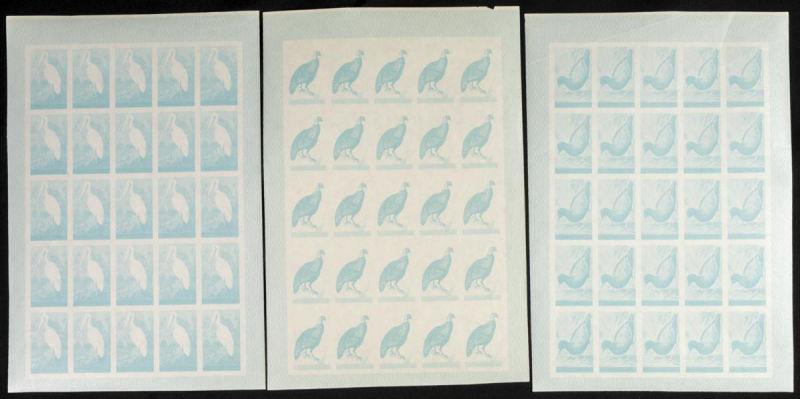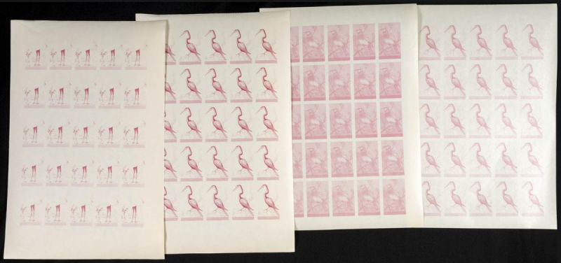 |**|Yvert 123/37. 1965. Birds. Group of progressive plate proofs of the set. TO EXAM. Description of lots is limited to the cataloguing of the stamps and their characteristics. The total of the material included in each case is