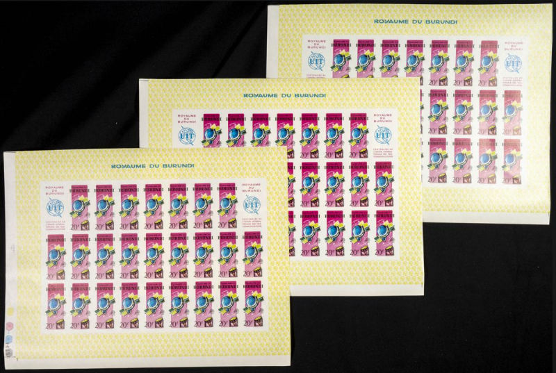 138/45. 1965. I.T.U. centenary. Group of IMPERFORATED sets. TO EXAM. Description of lots is limited to the cataloguing of the stamps and their characteristics. The total of the material included in each case is photographed to allow an