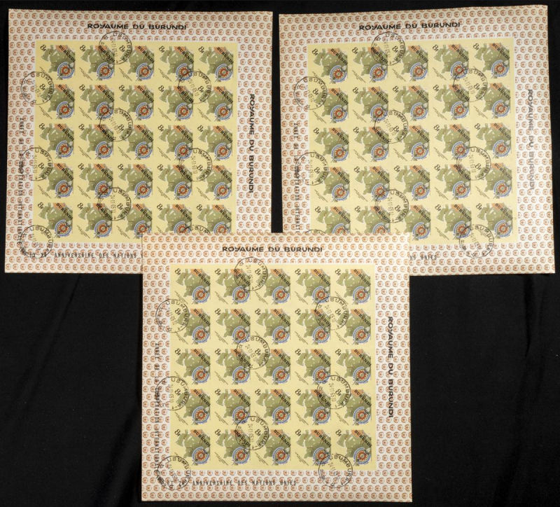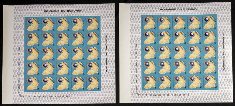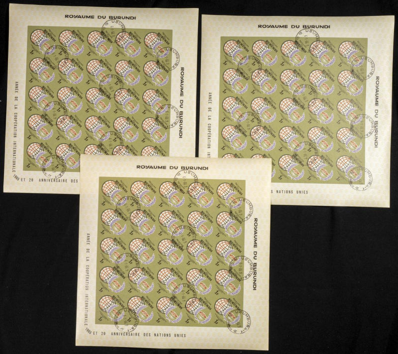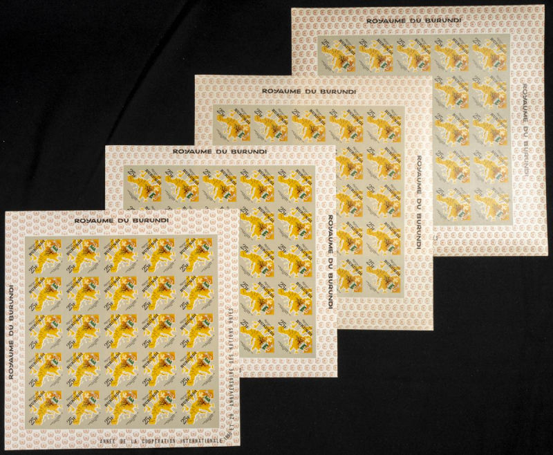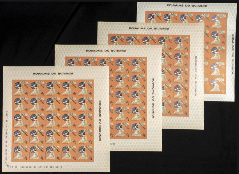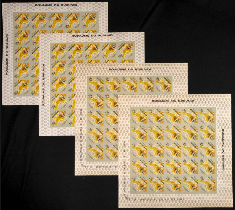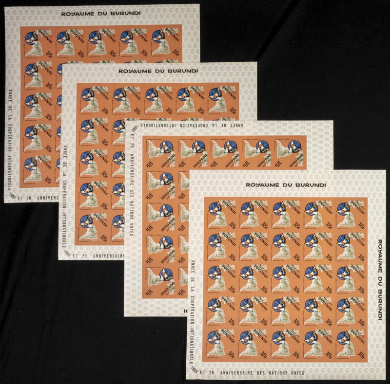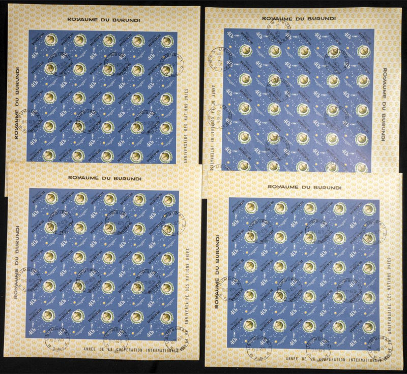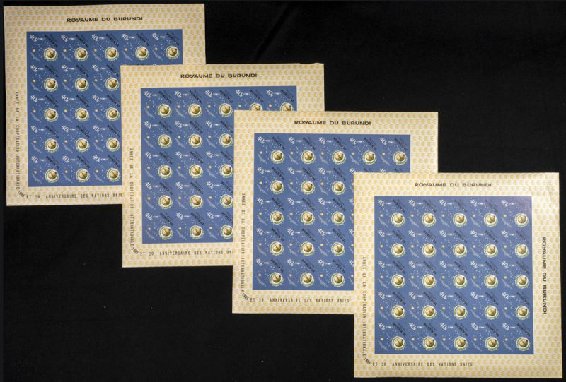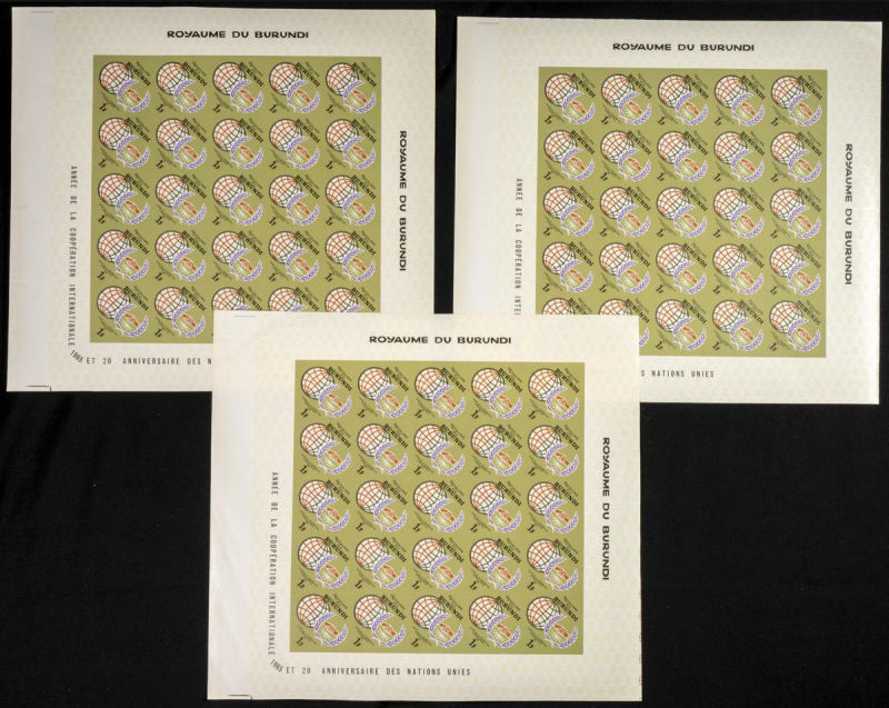 161/67. 1965. Int. co-operation O.N.U. Group of IMPERFORATED sets. TO EXAM. Description of lots is limited to the cataloguing of the stamps and their characteristics. The total of the material included in each case is photographed to allow