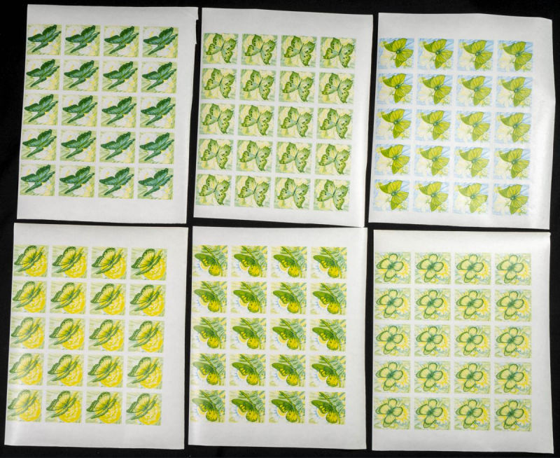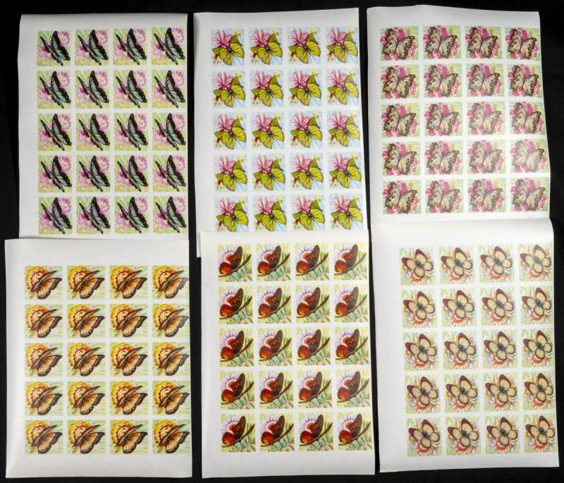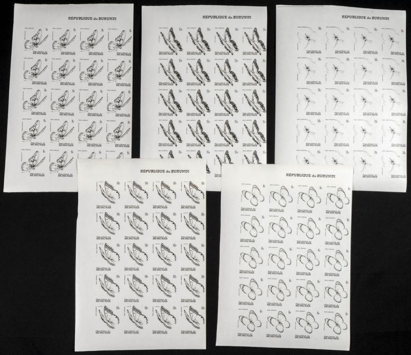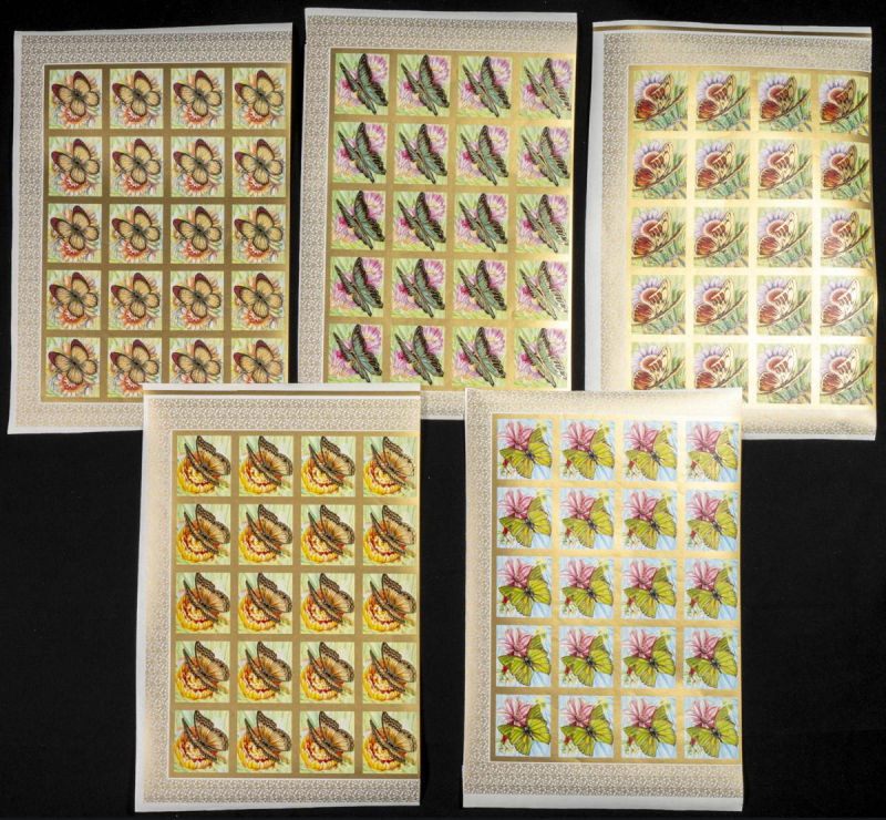 A82/90. 1968. Buterflies. Group of IMPERFORATED sets. TO EXAM. Description of lots is limited to the cataloguing of the stamps and their characteristics. The total of the material included in each case is photographed to allow an assessment