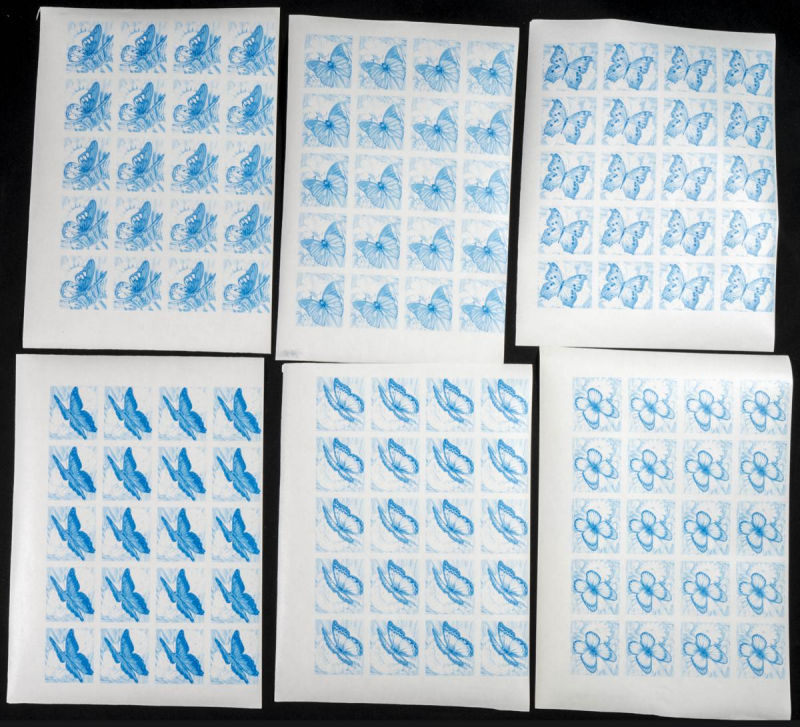 |**|Yvert A82/90. 1968. Butterflies. Group of progressive plate proofs of the set. TO EXAM. Description of lots is limited to the cataloguing of the stamps and their characteristics. The total of the material included in each