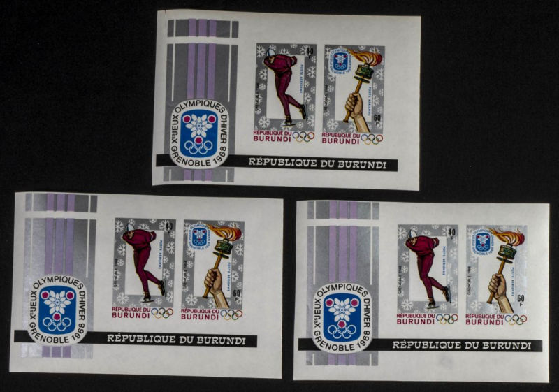 |**|Yvert B23. 1968. Olympic Winter Games-Grenoble ’68. Group of IMPERFORATED sets. TO EXAM. Description of lots is limited to the cataloguing of the stamps and their characteristics. The total of the material included in each