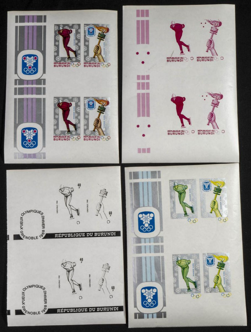 |**|Yvert B23. 1968. Olympic Winter Games-Grenoble ’68. Group of progressive plate proofs of the set. TO EXAM. Description of lots is limited to the cataloguing of the stamps and their characteristics. The total of the material