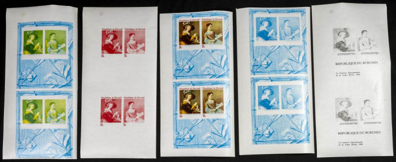|**|Yvert B25. 1968. Letter writing week. Group of progressive plate proofs of the set. TO EXAM. Description of lots is limited to the cataloguing of the stamps and their characteristics. The total of the material included in