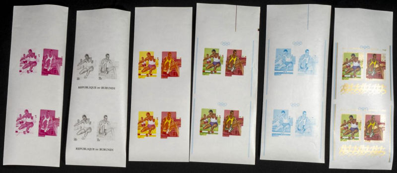 |**|Yvert B26. 1968. Olympic games-Mexico ’68. Group of progressive plate proofs of the set. TO EXAM. Description of lots is limited to the cataloguing of the stamps and their characteristics. The total of the material included