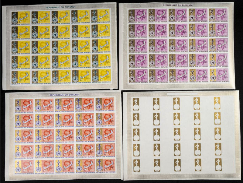 |**|Yvert A303/05. 1969. W.H.O.. Group of progressive plate proofs of the set. TO EXAM. Description of lots is limited to the cataloguing of the stamps and their characteristics. The total of the material included in each case