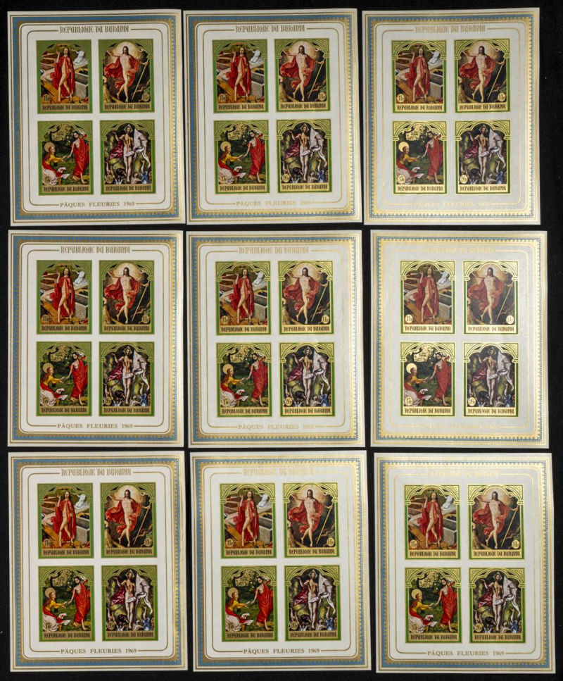 |**|Yvert B29. 1969. Easter. Group of IMPERFORATED sets. TO EXAM. Description of lots is limited to the cataloguing of the stamps and their characteristics. The total of the material included in each case is photographed to
